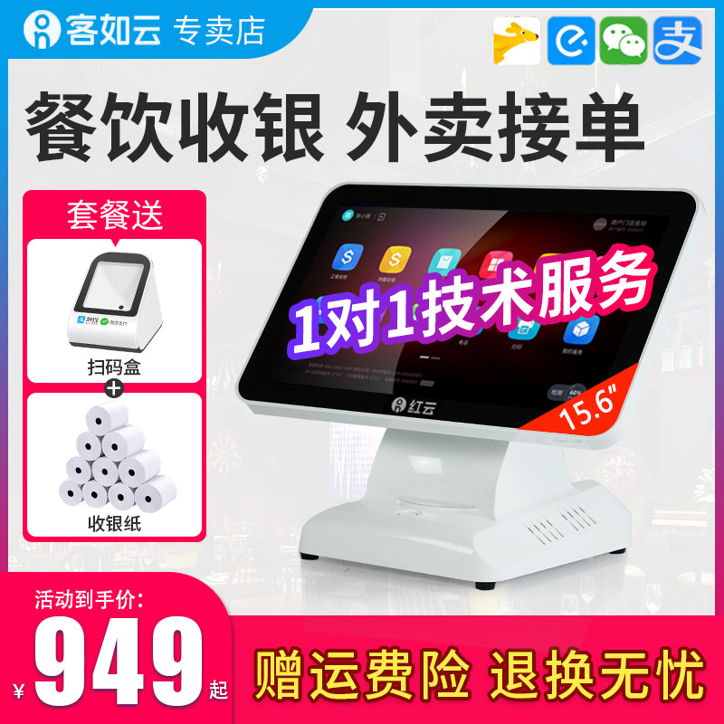 客如云红云2触摸单双屏餐饮收银机一体机奶茶店饭店快餐点单机扫码点菜餐称重收款机带收银系统软件外卖对接