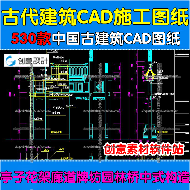 中国古建筑CAD图纸大全施工设计素材园林亭子仿古设计效果方案图热门设计联盟服务商