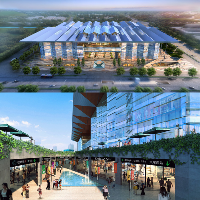 现代创意折面屋顶玻璃幕墙建筑室内交通枢纽汽车站下沉广场SU模型热门设计联盟服务商