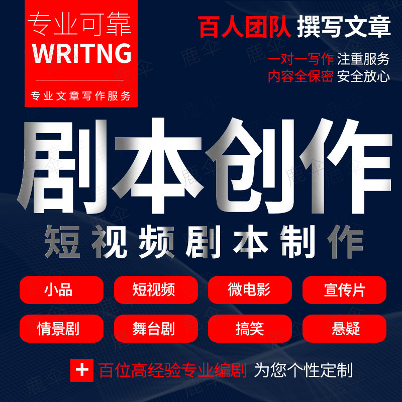 写剧本创作短视频微电影脚本段子分镜头情景剧宣传片编剧原创写作热门设计联盟服务商