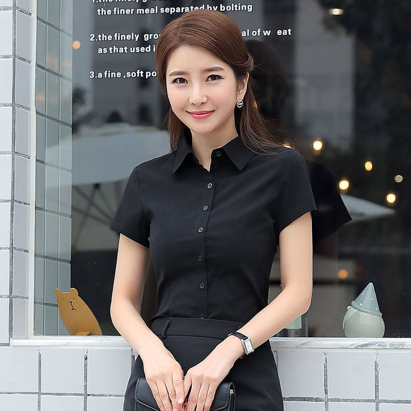 夏季新款韩版黑色衬衫女短袖职业装商务酒店服务员修身气质衬衣热门设计联盟服务商