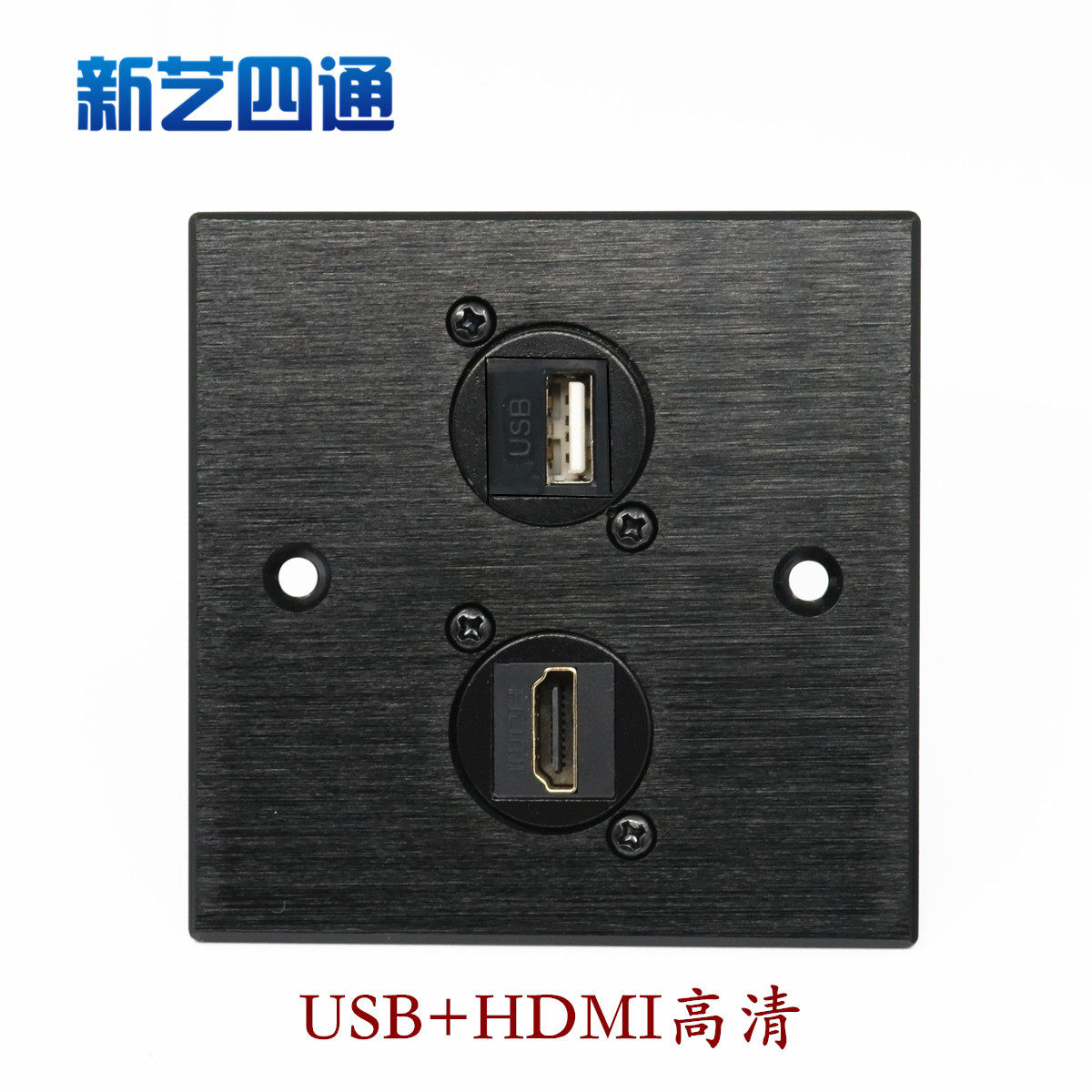 黑色HDMI高清USB插座面板直插式86型 铝合金属多功能插座影音设备热门设计联盟服务商
