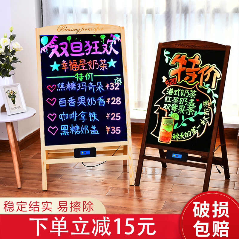 led荧光板广告板小黑板店铺用商用宣传夜光发光字荧光屏手写电子写字板门口展示牌黑板木质广告版充电款摆摊热门设计联盟服务商