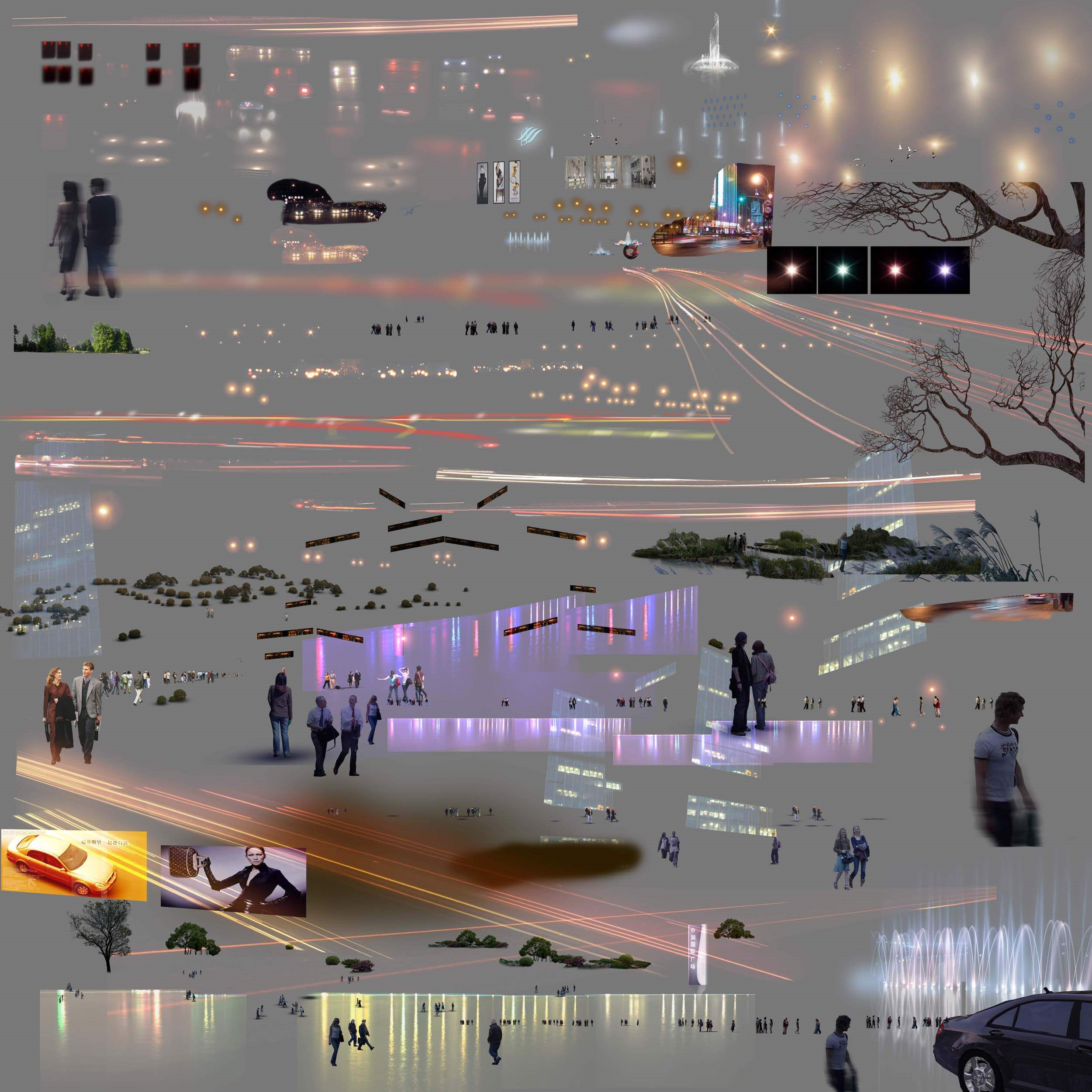 建筑景观园林后期PS效果图夜景光源灯光照明亮点PSD素材源文件热门设计联盟服务商