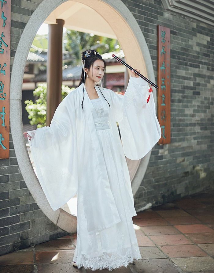 白色女汉服表演艺术照片摄影节日庆典民族服饰大袖衫汉服套装热门设计联盟服务商