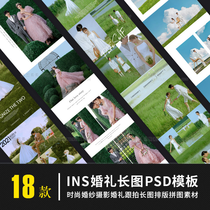 ins简约婚礼跟拍长图PSD模板影楼摄影婚纱照片海报拼图沛PS素材热门设计联盟服务商