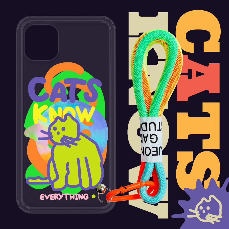 PaPaPa制造局 荧光挂绳手机壳iPhone12 ProMax苹果11适用透明XS热门设计联盟服务商